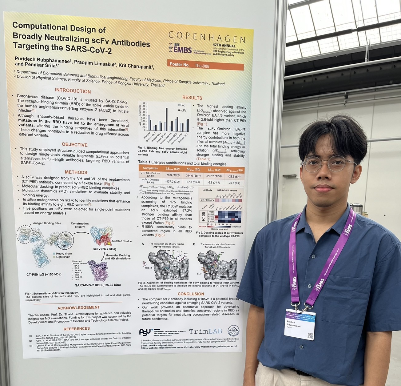 Two promising young researchers from our TrimLAB, at Prince of Songkla University, successfully presented their work at the prestigious 47th Annual International Conference of the IEEE Engineering in Medicine and Biology Society (EMBC 2025). The conference, a premier event for biomedical engineers and researchers, was held in Copenhagen, Denmark, from July 14-17, 2025 with estimated attendance of 2000 participants from around the globe!!!